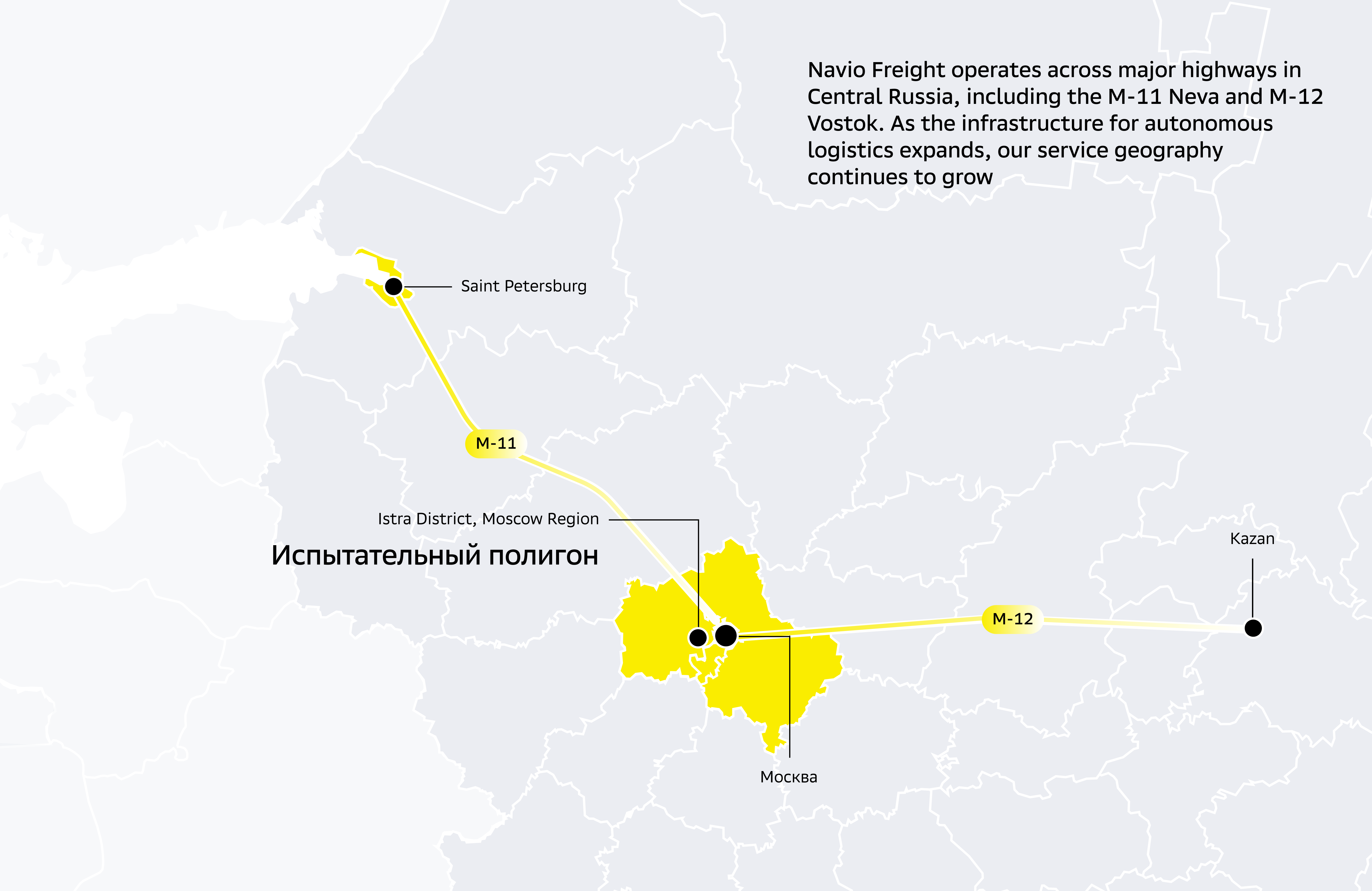 Navio Freight delivers innovative solutions for long-haul freight: autonomous trucks with the AI driver, a 24/7 fleet-management platform, and a tailored service network for seamless support